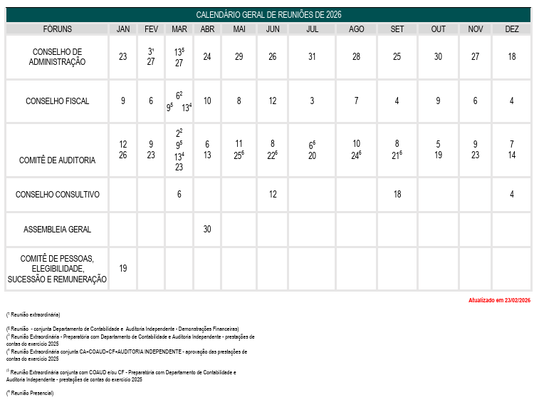 Plano de Trabalho do Comitê de Pessoas, Elegibilidade, Sucessão e Remuneração 2026